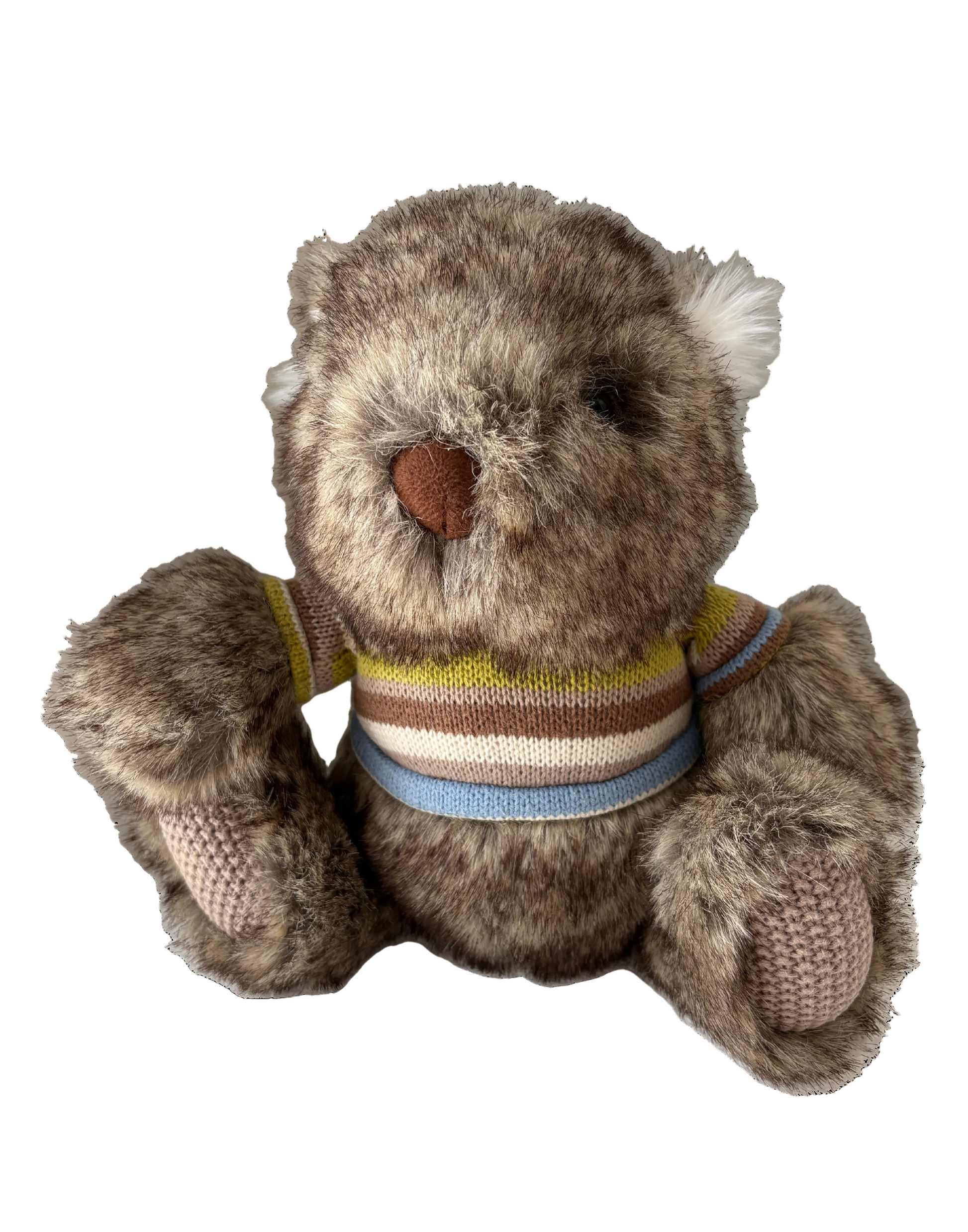 Brownie is a delightful wombat dressed in his cosy knitted jumper and some knitted details on his paws. He brings instant smiles wherever he goes. Confident, cuddly and quietly proud of his cuteness! He is ready to be loved.
