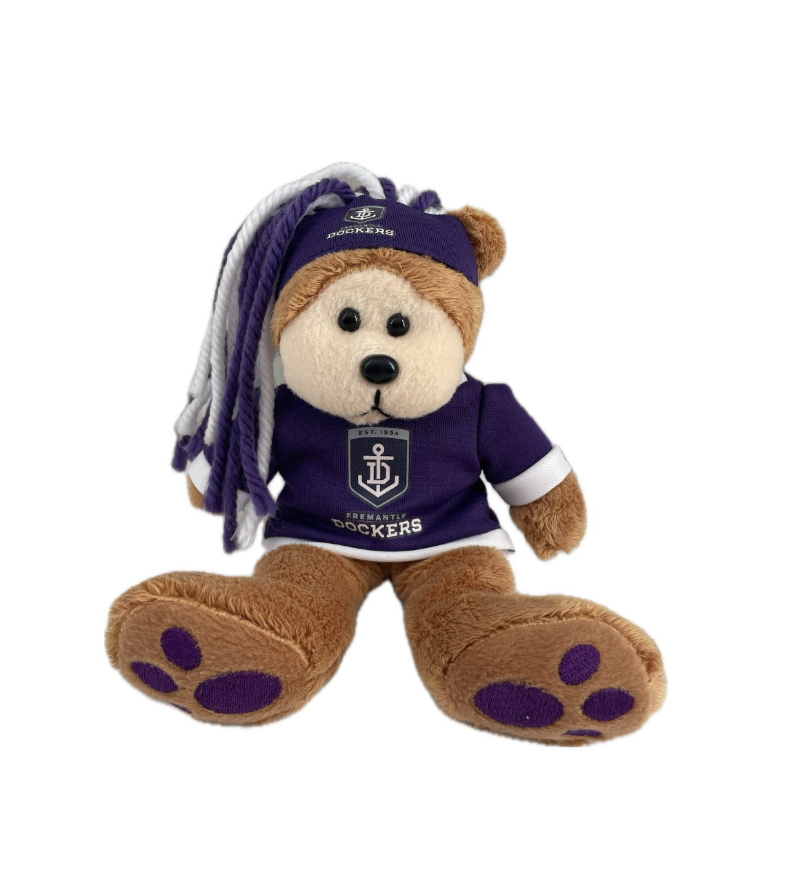 Pat Bear isn’t just a supporter — he lives for the Fremantle Dockers. Win, lose, rain or shine, he’s in the front row (or on the couch, screaming at the telly). He's the bear who paints his cheeks purple and white, high-fives every goal, and never gives up on his team or his friends!